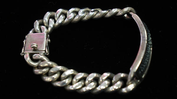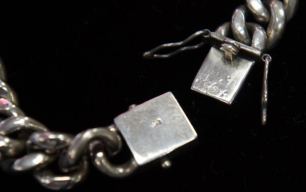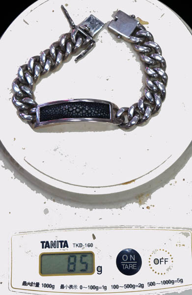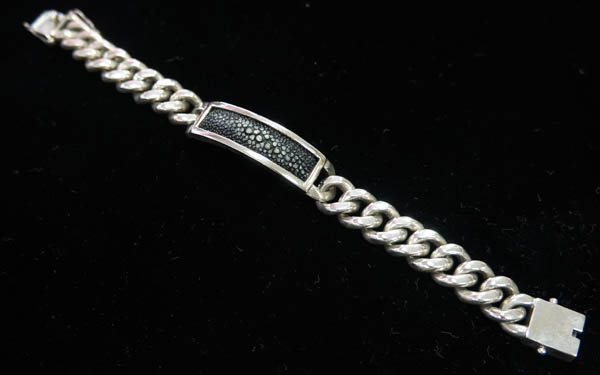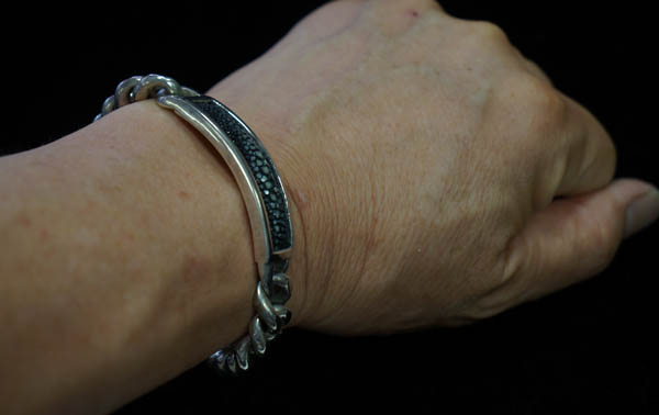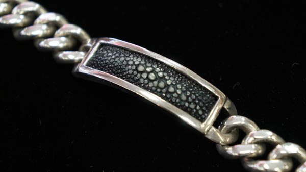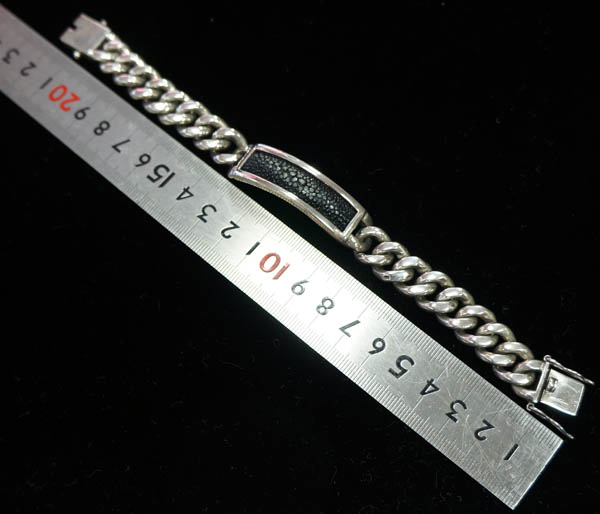 ◆シルバー925の喜平ブレスレットです。 ずっしりと存在感のあり、 スタイリッシュなチェーンです。 エイ革のプレートがついています。