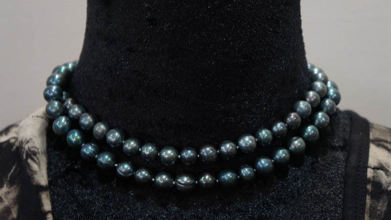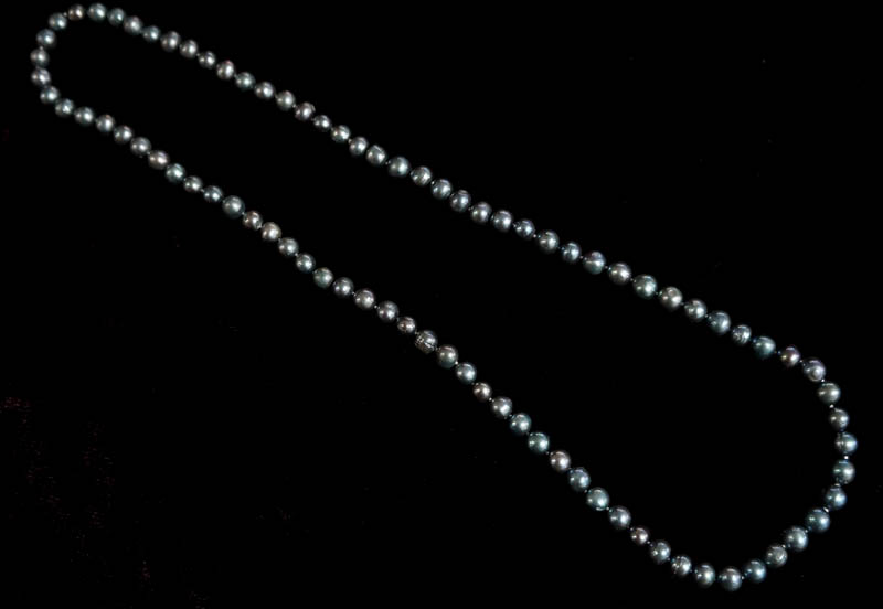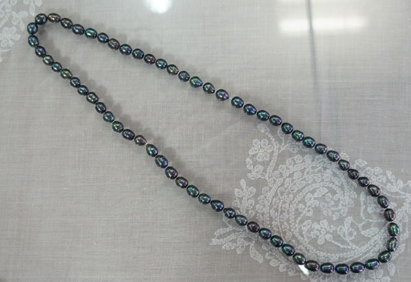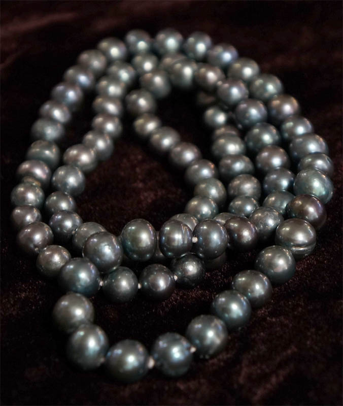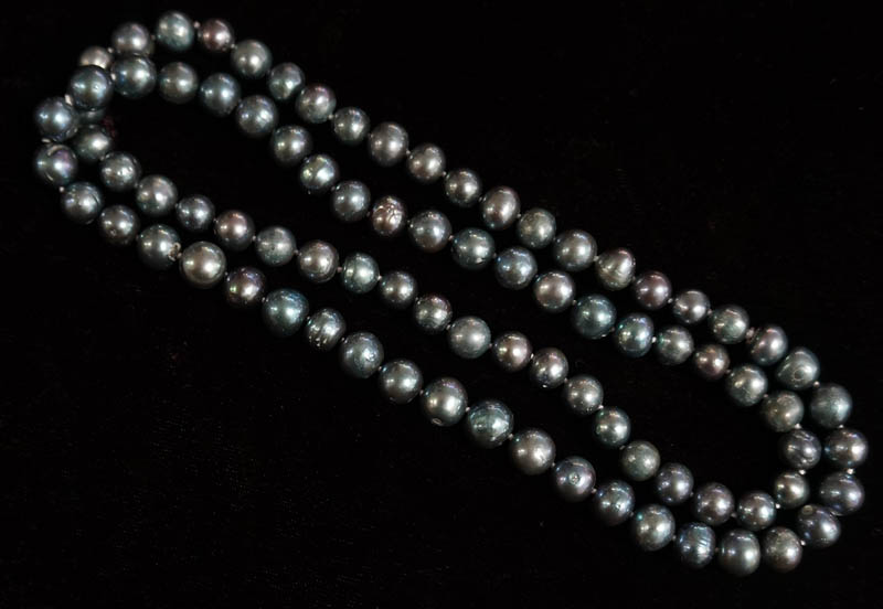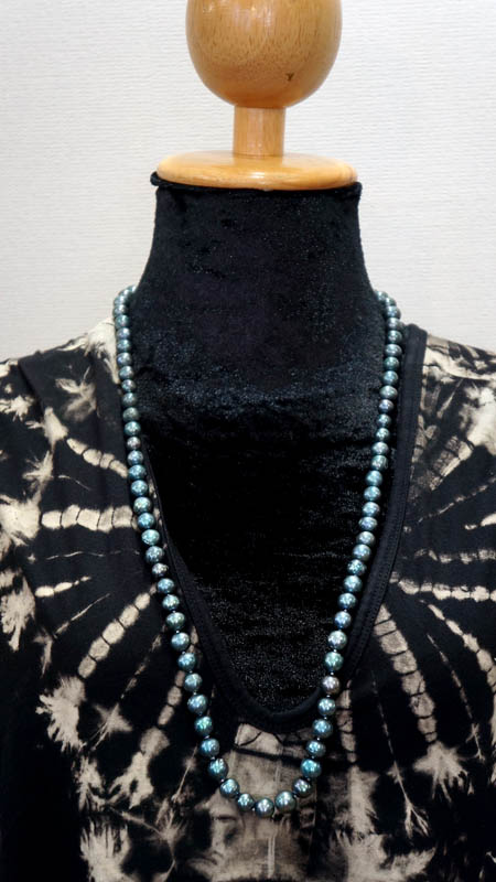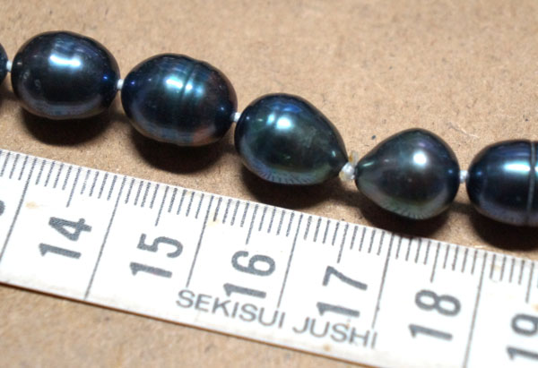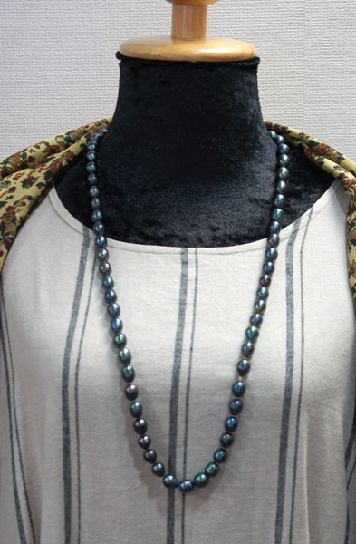 ◆ブラック、ブルーグレイの微妙な色彩が美しい 大粒の淡水真珠のネックレスです。 とてもシックでゴージャスです。 ちょっとしたお出かけや法事などにも 一本あると便利ですよ。 ◆一つ一つ見るとそれぞれ形や色も個性的で美しいですよ。 ◆長さ78cm 粒の大きさ長さ10mm
