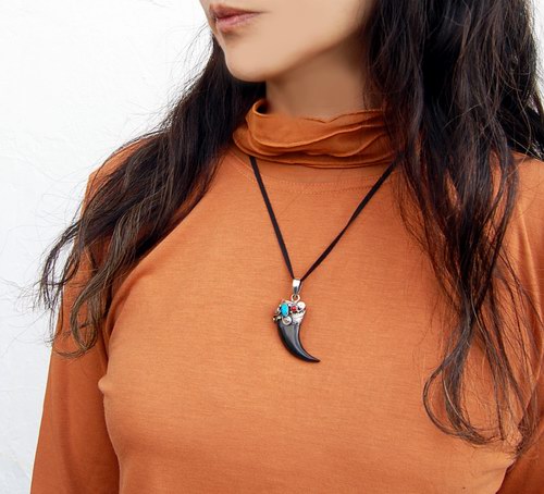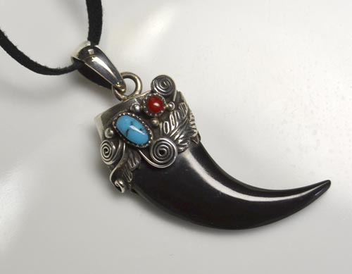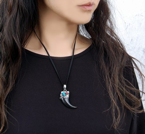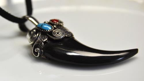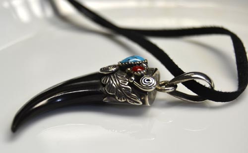 ◆黒光りした水牛の角の TOP部分をシルバーでかぶせターコイズやグルグル紋様 やリーフでデコレートしました。 とてもかっこいいペンダントです。 ◆台座は925シルバーでつくられています。 デザインはネパールのデザインです。 ◆すべてハンドメイドで作られています。 作者の手や息遣いが伝わってくるような 素朴で温かみがあります。 ◆プレゼントにも喜ばれますよ♪