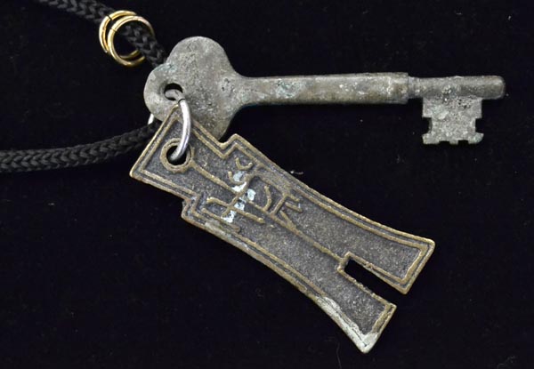 ◆アクセサリー作家の山田珠実さんから ステキな新作アクセサリーが届きました。 すべて珠実さんのハンドメイド作品です。 ◆古びた錆びついた鍵と 中国の不思議な記号が刻印されたネックレスです。 シンプルでかっこいいネックレスです。 サイズ調整可能ですよ。